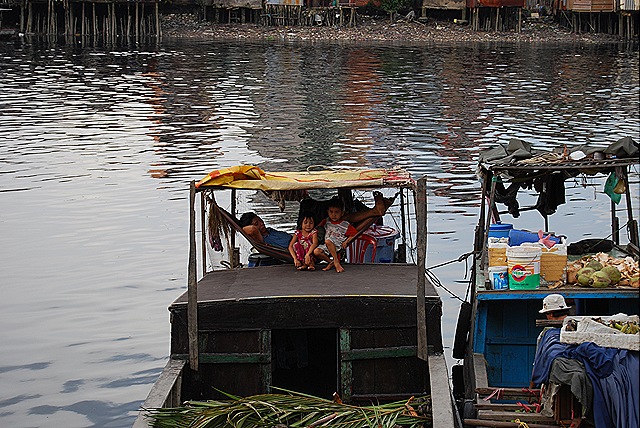 Boat children living in the impoverished area of Viet Nam. I took more than six pictures here. It is shocking to see the sharp contrast of the shacks on stilts here and the high-rises beyond them. Unfortunately, the lens was not big enough to capture this, so you'll have to come to Viet Nam yourself.