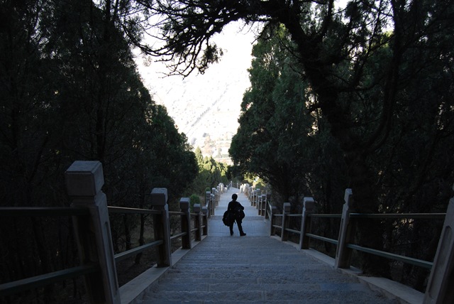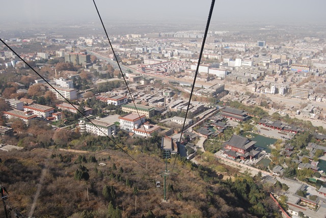 Soaring above Xi'an on a cable car. Little did we know a long climb was ahead of us. Speaking of which...